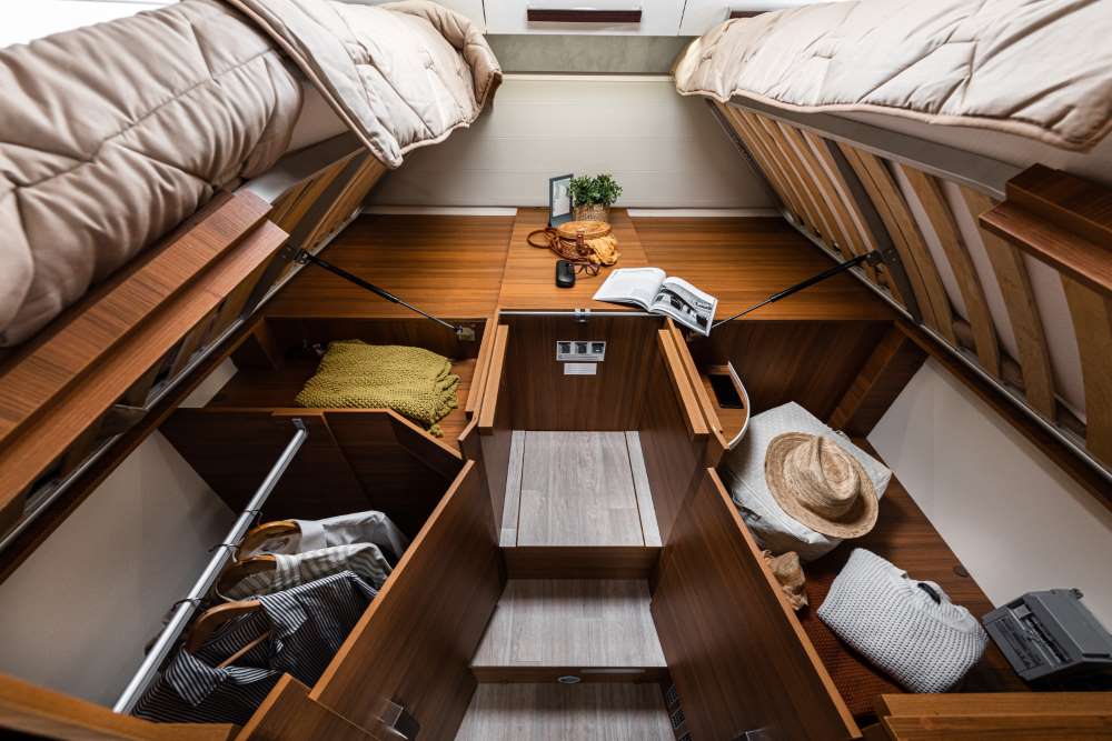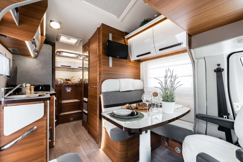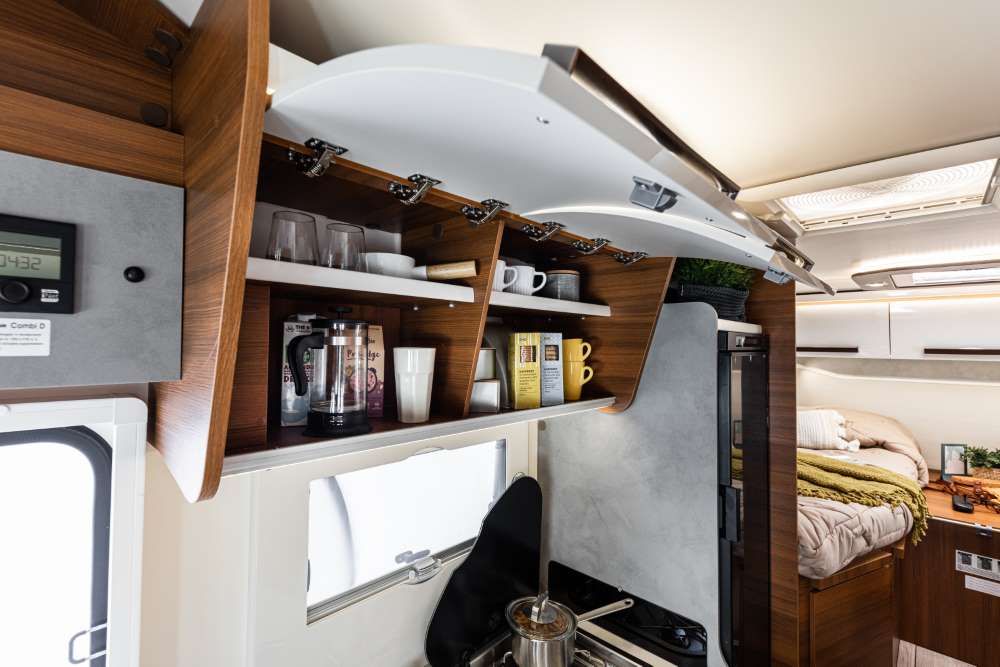 Het design van de Baron modellen kenmerkt zich voor wat de buitenzijde betreft door heldere kleuren en mooie lijnen. In het stijlvolle interieur zorgt de warme houtkleur in combinatie met witte deuren voor een luxe uitstraling. Er is keuze uit 3 stofferingen waarbij wij de meeste campers inkopen met een luxe ecolederen stoffering.