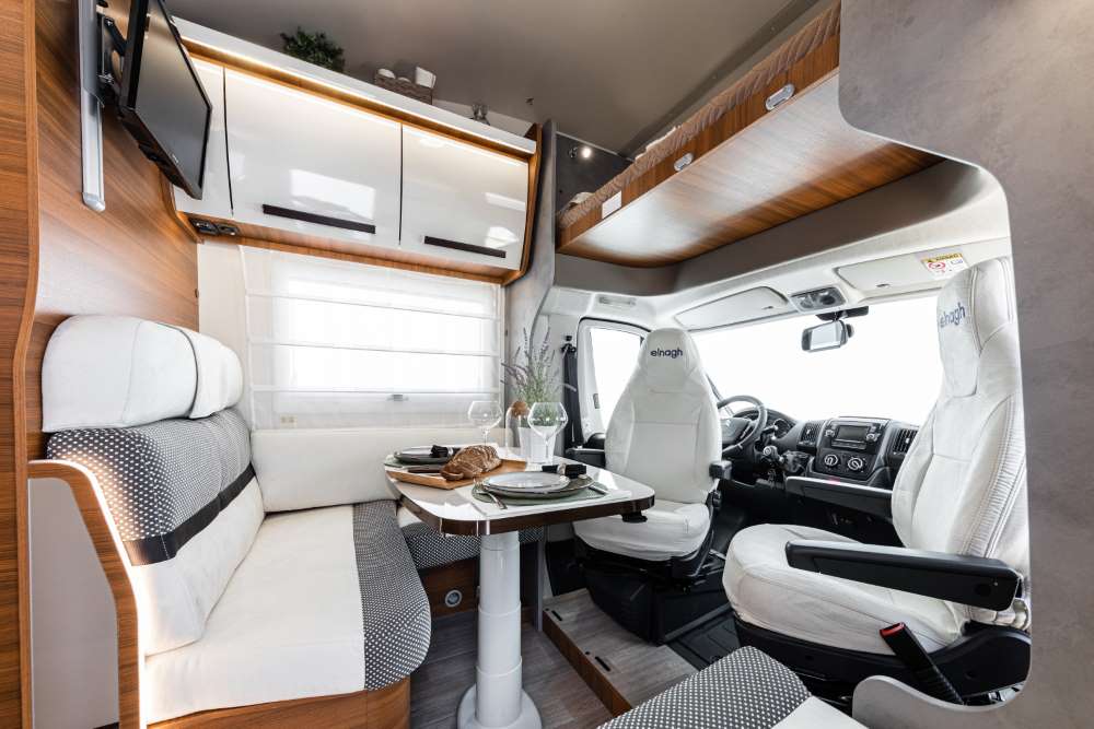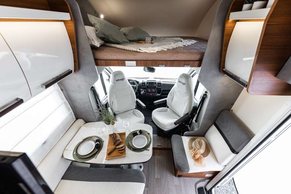 In de family klasse huurt u een praktische alkoofcamper met een groot 2-persoons bed boven de cabine. Op dit moment hebben we in deze klasse nog de Elnagh Baron 65 uit 2023. Dat is een alkoofcamper voor 5 personen, met lengtebedden achterin en een opklapbaar alkoofbed met daaronder draaibare cabinestoelen. Als deze verkocht wordt, komt er geen alkoofcamper voor terug. Dan wordt de nieuwe vervanger een Elnagh Baron 573.